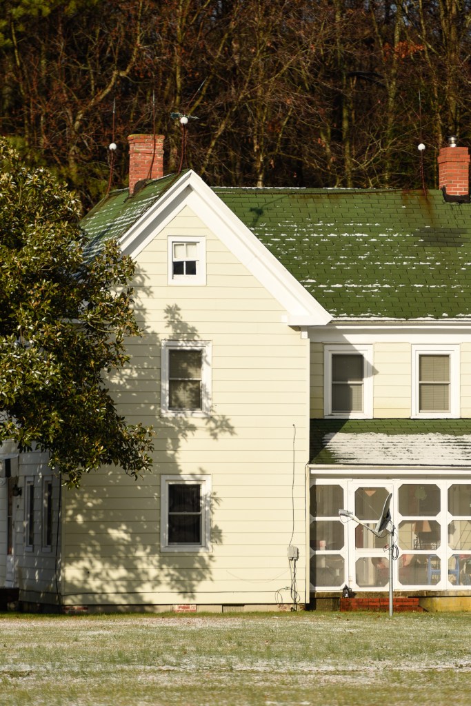 I only discovered Blackwater Refuge two years ago, during a weekend trip, and now I find myself visiting and exploring frequently in the early morning to capture photos of the landscape and the wildlife. It’s less than two hours from Washington, D.C. I usually arrive before dawn. Once I turn off the main road to the shore points, time slows. It’s quiet here, even in the summer. In the winter it feels abandoned. I usually see something new each visit: a quality to the light, a chance encounter with an eagle or some other creature. On this day it’s snowing lightly. The air and wildlife move about freely in a quiet rush of feeding and surveying. I’m an intruder and watched by the wildlife and the locals. The flat land lets the wind glide along with little interruption which adds to the feeling of remoteness and wildness. In the winter, the unfettered, damp wind can be brutally cold. Cambridge, Maryland’s business district is fifteen minutes away, buffered by a multitude of farms of varying sizes and conditions. The occasional car will pass. I’m noticed immediately by a dog when I stop at dawn to take a photo of an older farm house decorated for Christmas. I move along not wanting to cause disruption, but I may be too late for that.