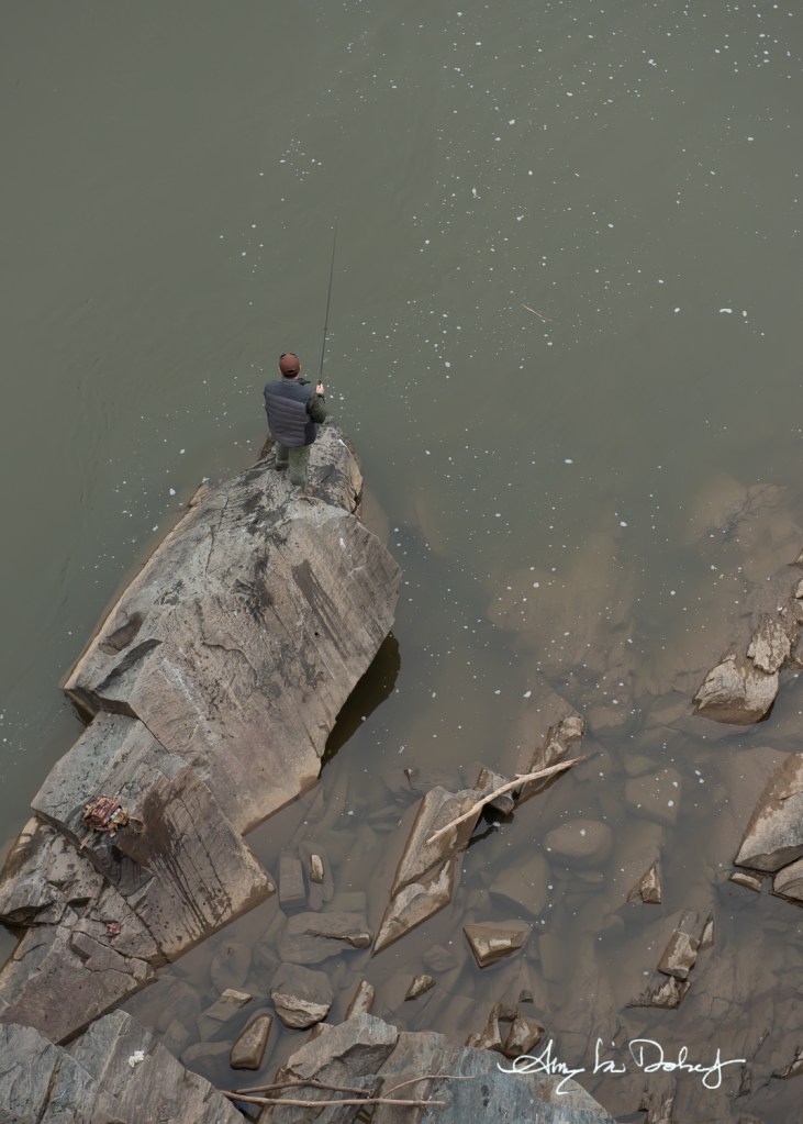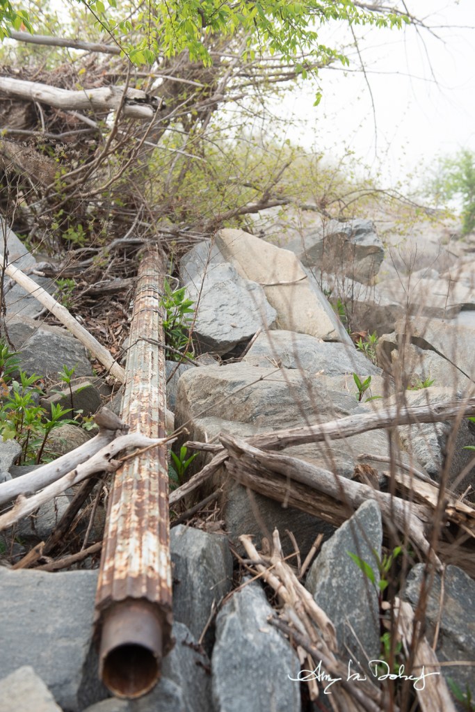 Down among the heavy, jagged rocks that characterize the Potomac River Gorge, just downstream from Great Falls and Mather Gorge, I also found a lot of trash and other debris strewn and left along the rocky banks. Certainly some of it comes from the river, dumped when the water runs high, but much of it comes from those who frequent this fishing hole.