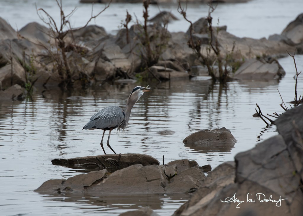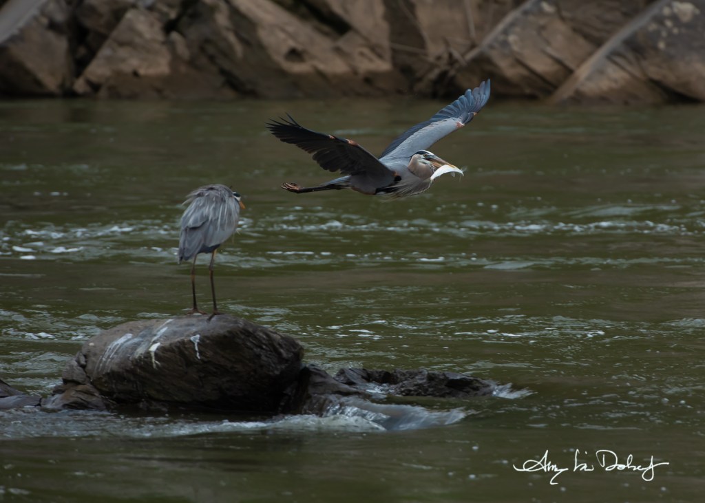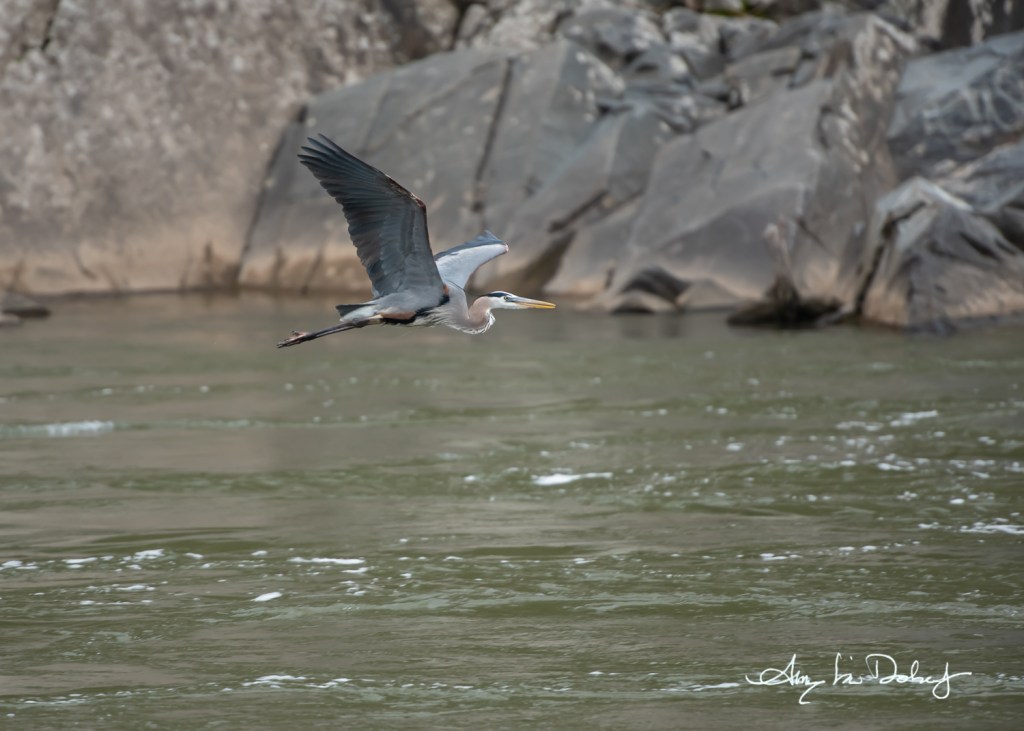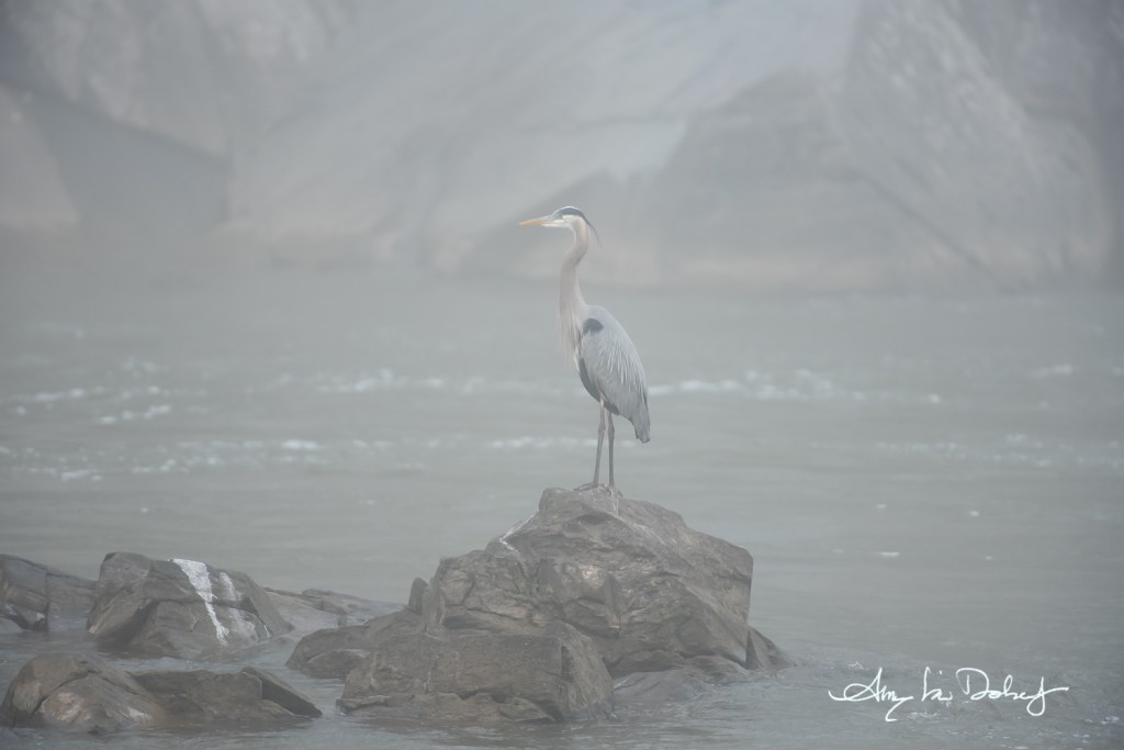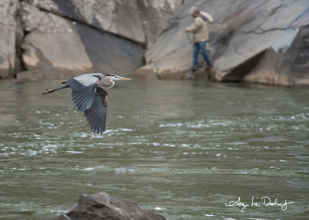 I spent a foggy morning along the Potomac recently, watching the fishing done by men and birds near Chain Bridge. The birds seemed to be winning, both the Great Blue Herons and the Red Faced Cormorants. I also spotted a Raven and an Osprey as I crossed the historic span headed home.