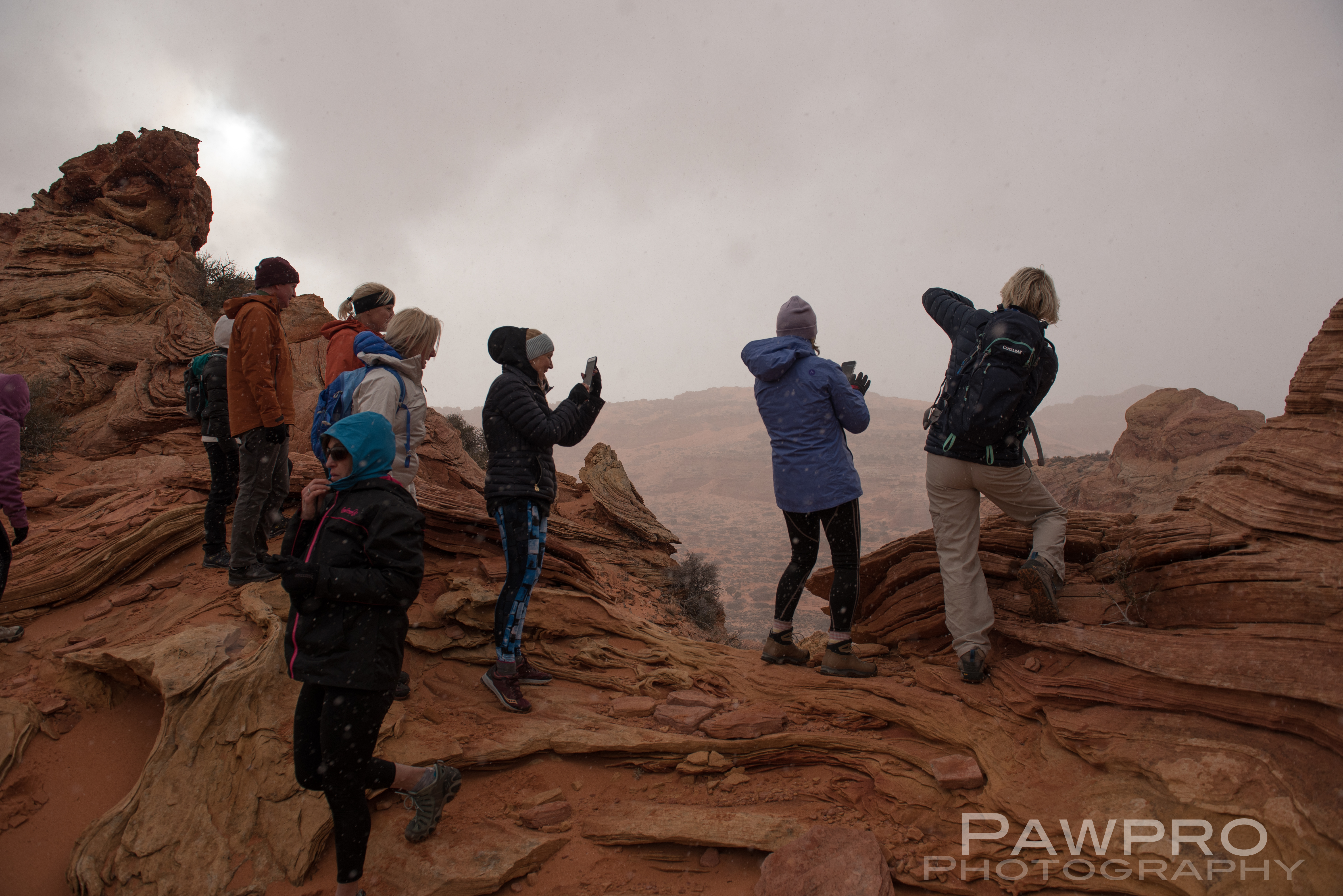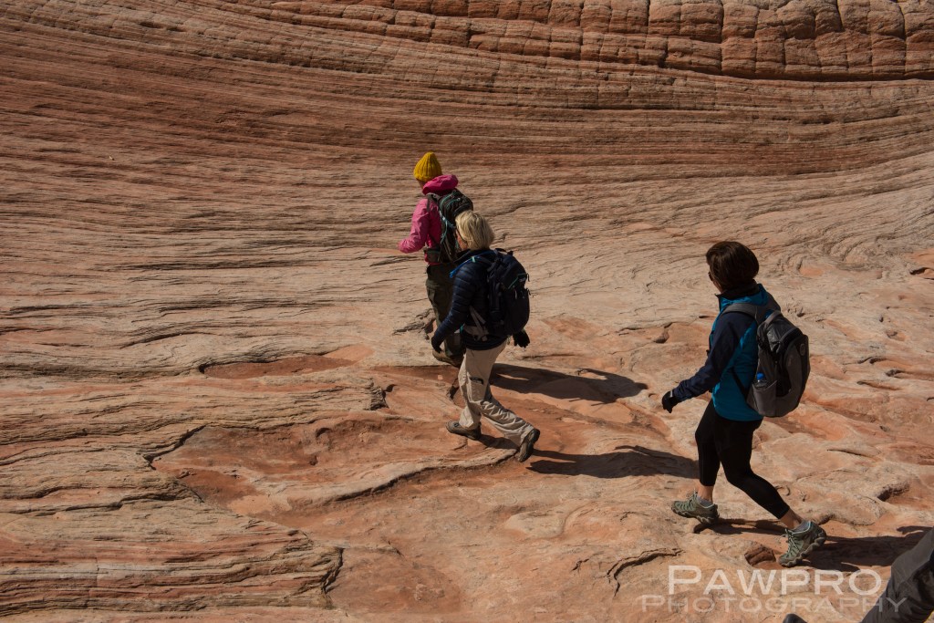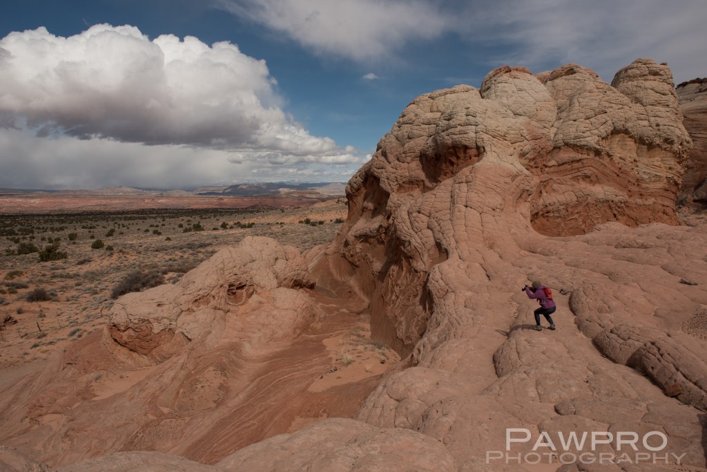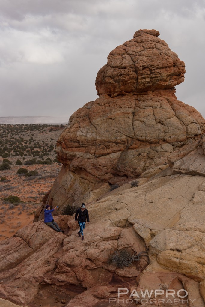 I considered trying to access South Coyote Buttes on my own, BLM permits in hand, but was glad I didn’t once I saw the conditions. The roads are tough and require a true high clearance, 4X4 vehicle. Your basic AWD, rental vehicle probably won’t cut it in the deep sand, potential deep mud, combined with steep inclines, large rocks and ditches. It’s also easy to forget the elevation because of the plateau. As with any mountainous region, conditions can change quickly. I spent most of the day in the area that started out with sunny blue skies, but quickly devolved into a disorienting, extended snow squall. If you get stranded or stuck you’re not likely to see a passerby until the next day. Ignorance, isolation and preparedness are formidable and the most common predators of visitors, say the locals. Even if you have the proper vehicle and feel comfortable behind the wheel in these conditions, navigating the infrequently marked, dirt trails, from one area to another could be another wheel spinner.