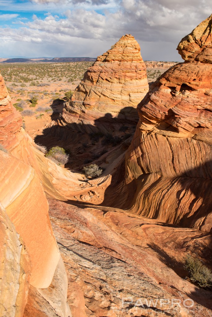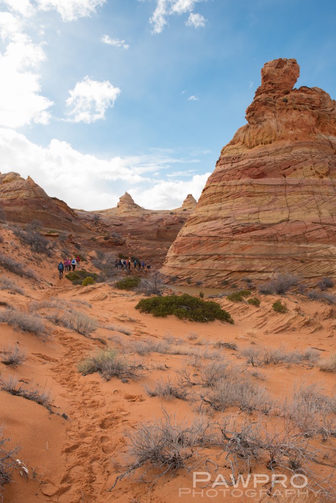 Nearby is the more well-known, North Coyote Buttes commonly referred to as, The Wave, where access is limited to 20 visitors a day by lottery, and South Coyote Buttes which requires daily permits and limits, as well–even if you have a guide. (BLM Coyote Buttes Permits) White Canyon doesn’t require a permit. The Bureau of Land Management (BLM) oversees all of these areas.