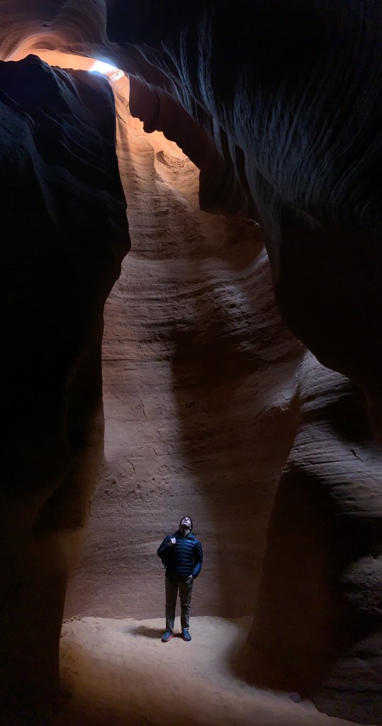 I had the pleasure of visiting two slot canyons near Page, Arizona this year. The first was the high profile and well-worn Lower Antelope Canyon and the second, Canyon X, only open to the public since 2016–an amazing fact to me–millions of years in the making and to be among the first, relatively speaking, to see it. Both of these slot canyons are the by-products of the same 18 mile stream known as Antelope Creek near Lake Powell.