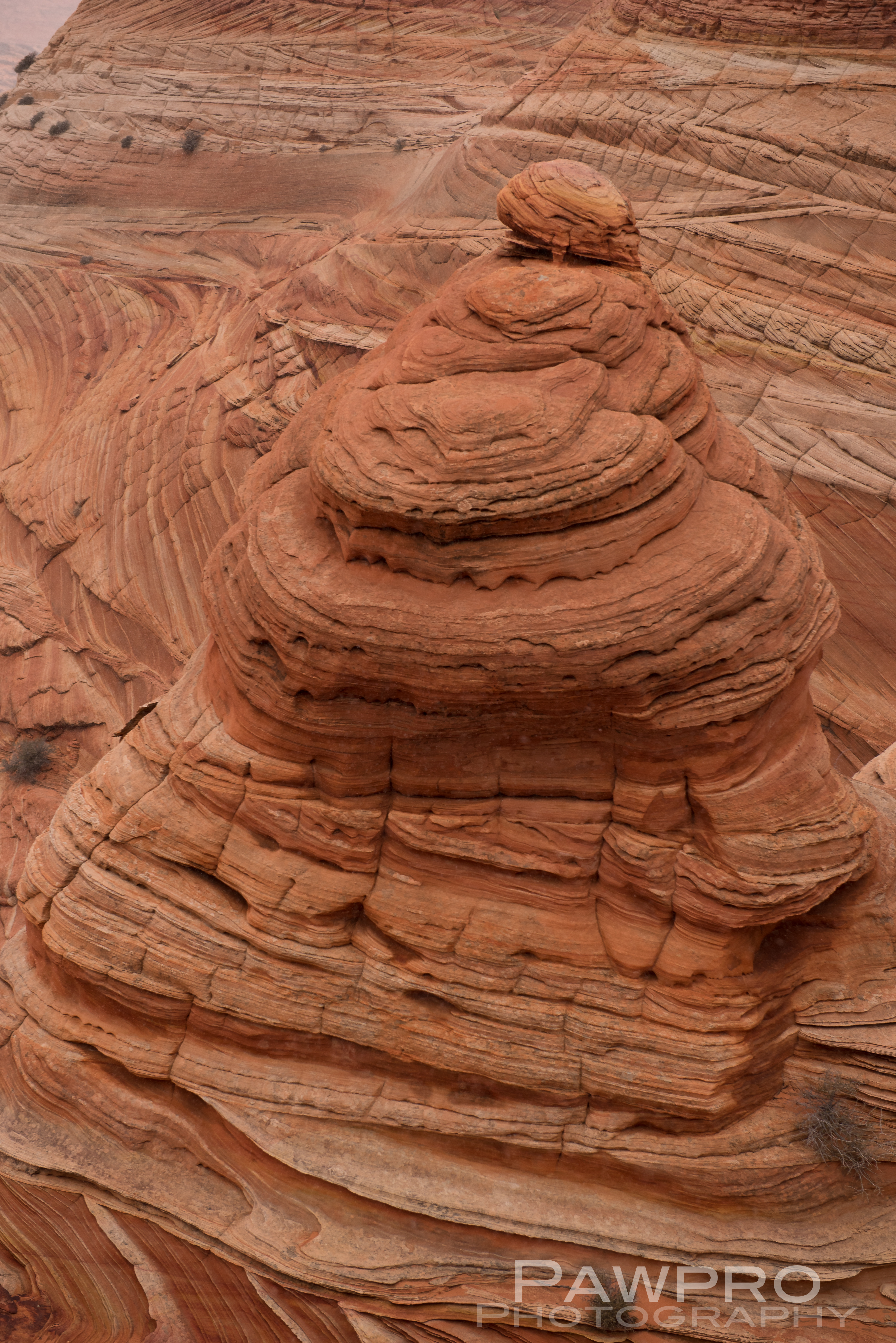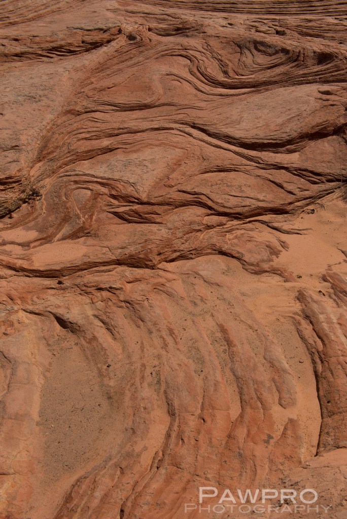 What’s uncommon is the well-preserved and chaotic layering where time and clearly violent movement tell the untold, almost photographic, story of what occurred here. Some geologists theorize that the area was created by a massive sand slide during the Jurassic Period, probably triggered by an earthquake, where soft, saturated sediment deep below the surface rapidly descended over a large pond or oasis resulting in unstable pockets of trapped water and wet sand shifting, burping, bending beneath like layers of rubbery rock.