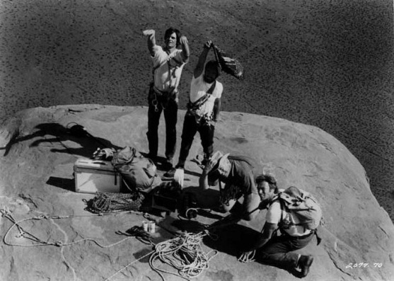 Archive production photo of Clint Eastwood and George Kennedy on top of Totem Pole in 1974.Phillips Photography Tour
