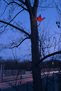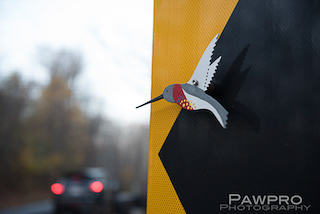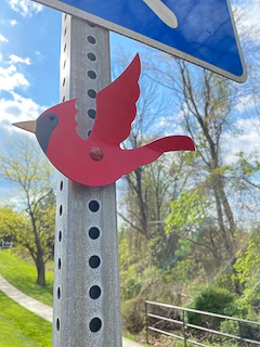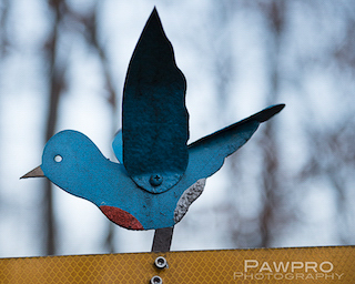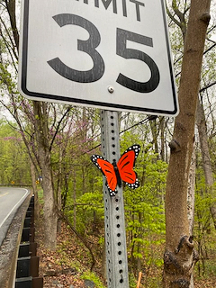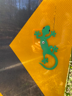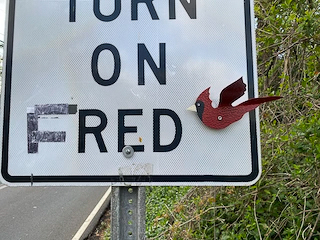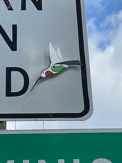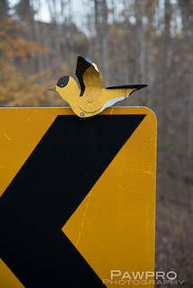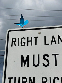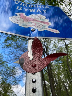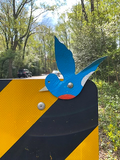 For years someone has been mounting animal (birds, mostly) shapes to road signs and trees in Mclean. Years ago I wrote about it. (See past post.) As time has passed I’ve watched as some signs were lost due to weather, road improvements, removal, or perhaps theft—if something left in public and illegally mounted which is then taken can be construed as theft??