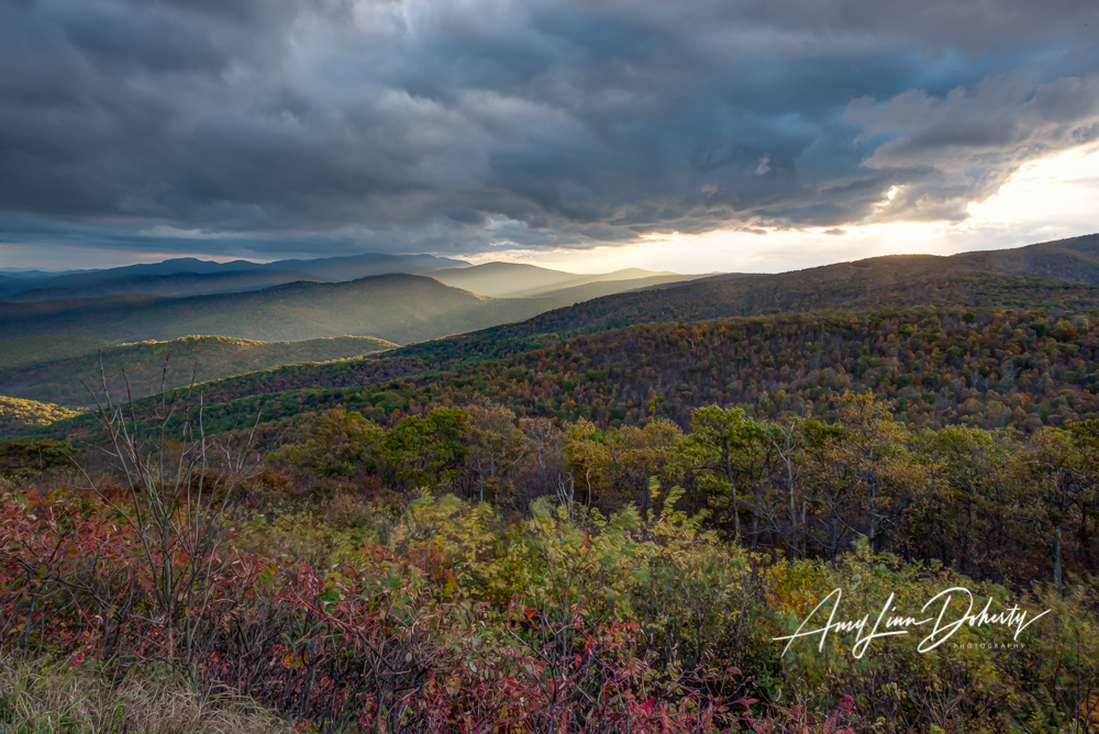 I am very pleased to have a large print on display at the Tysons Corner, REI in Virginia (Go see it.). It’s a photo I took several years ago in Shenandoah National Park’s Northern District of an approaching storm front. It’s a pretty dramatic shot.